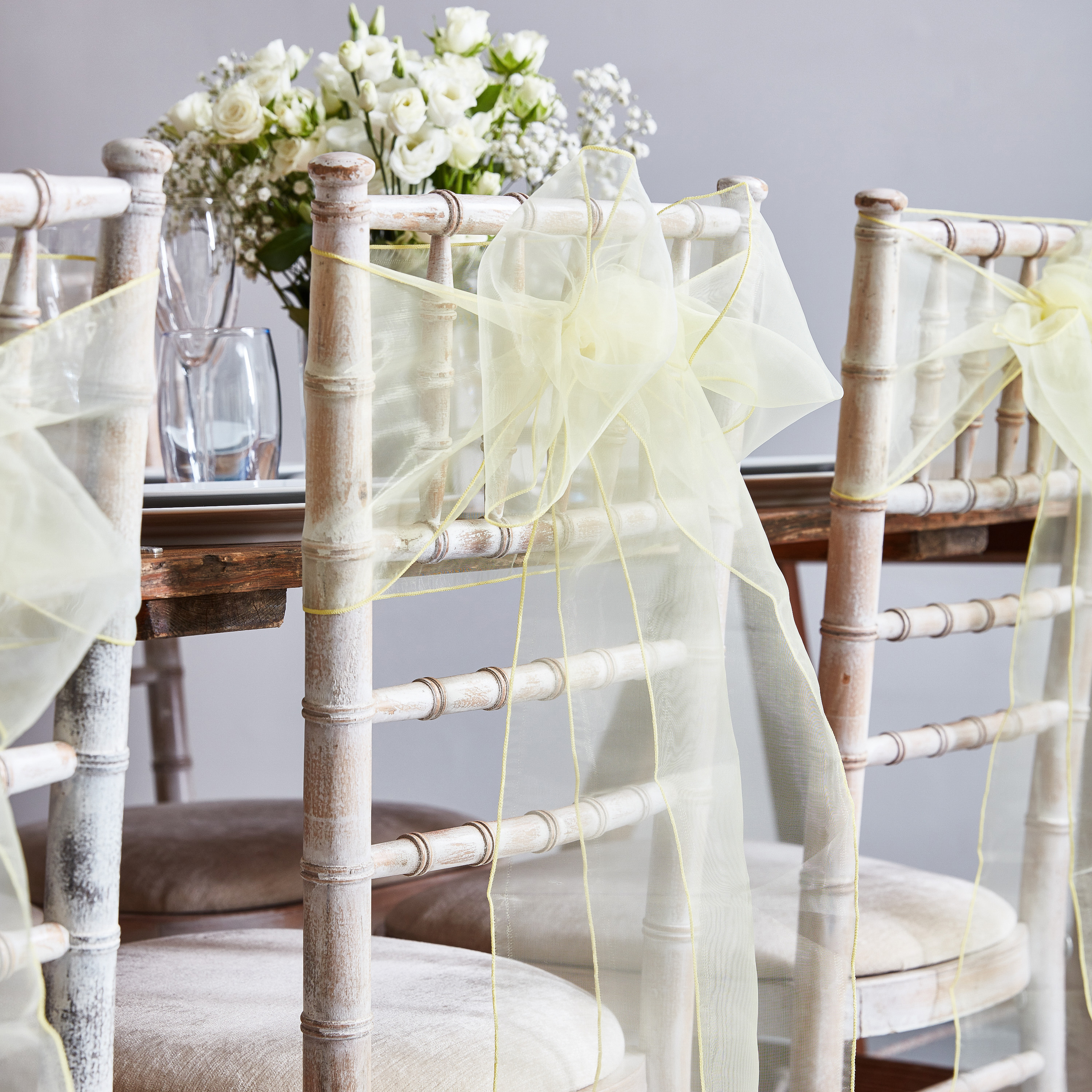 Chair sashes are available in a wide range of colours. If you know what you are looking for, you can choose from the combinations listed but if you are not sure, we are here to help. We have colour swatches available to help you find exactly what you want and we can help you work out the sizes and quantities you need. Contact us with any questions.